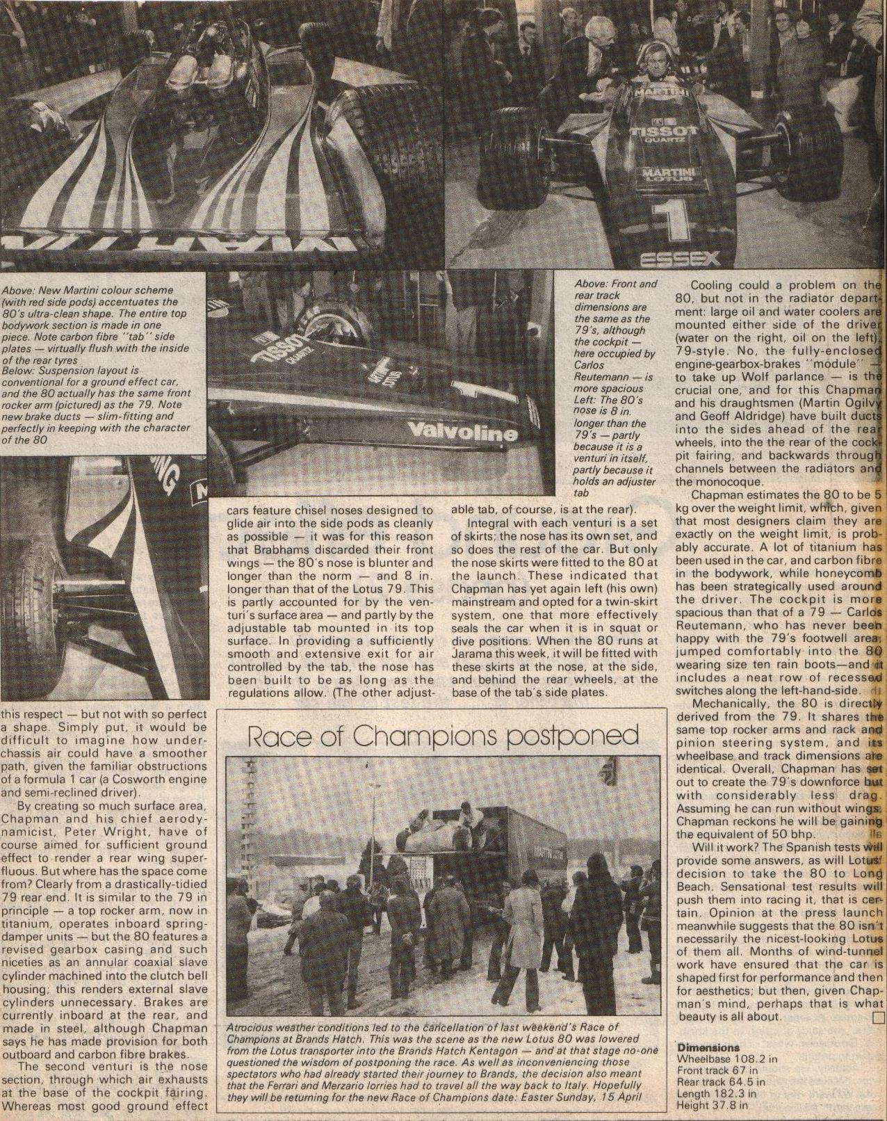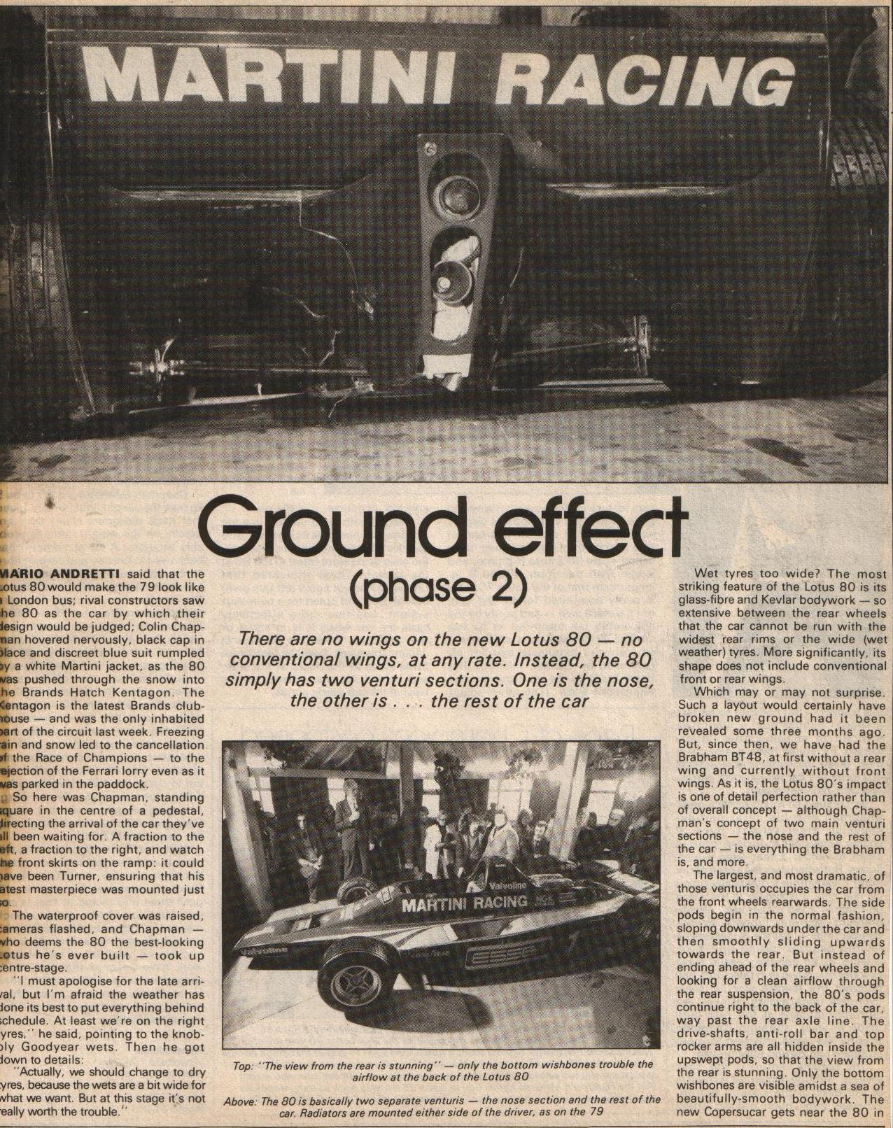 press coverage of the launch of the Lotus 80. 2 pages, in each case,